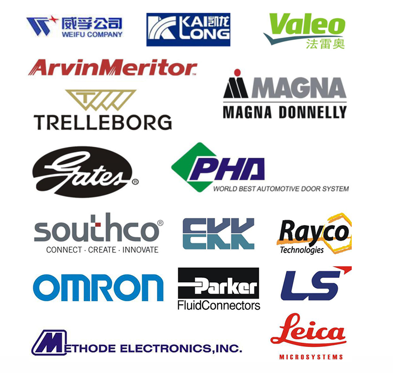 无锡威孚力达、无锡凯龙汽车、无锡烨隆、无锡爱富格、苏州艾迪康、苏州耀普、苏州苏尔兹、太仓平和精工、盐城平和精工、上海杰必、上海博帝、常州博帝、常州盖茨、上海岱高、吴江岱高、苏州岱高、西安艾尔希庆华、宁波艾尔希庆华、安徽保隆、烟台盖茨、金华朗克……